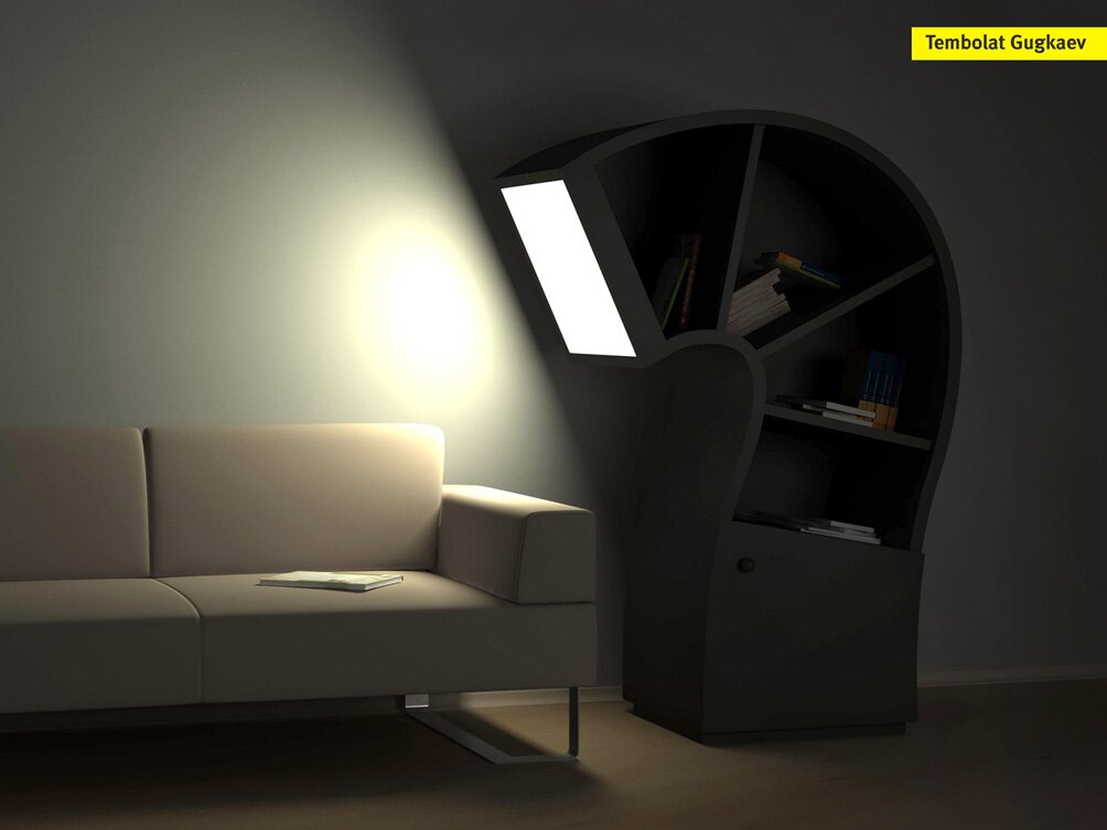 Hybrid of the armchair and bookshelf. Now you can read 1000 books not getting up. It remains to embed a toilet ...