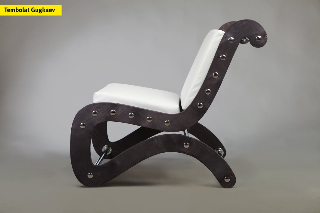 Material — plywood, steel, leather.