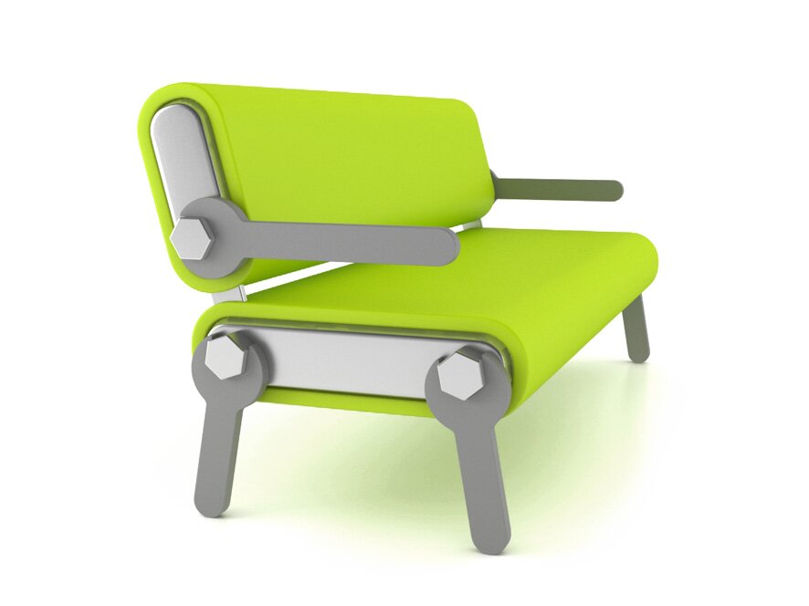 Hybrid of soft sofa and street bench.